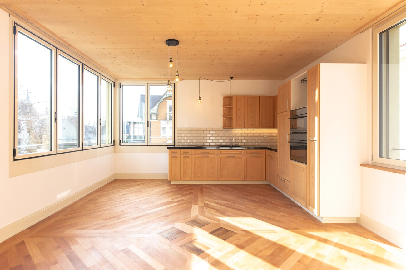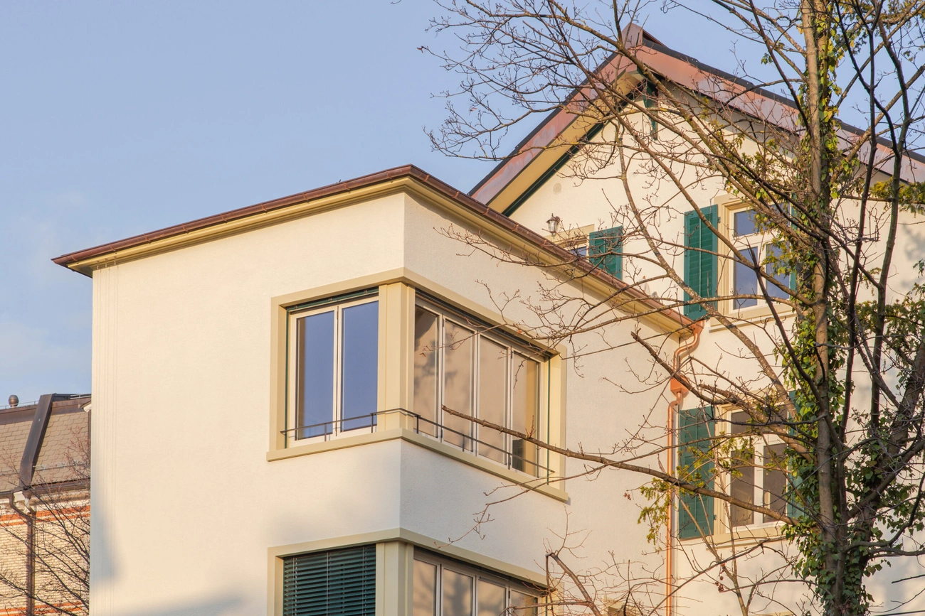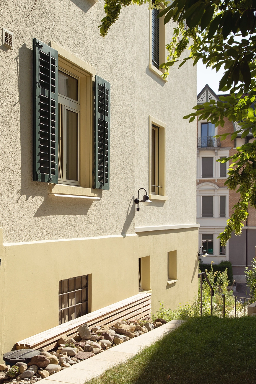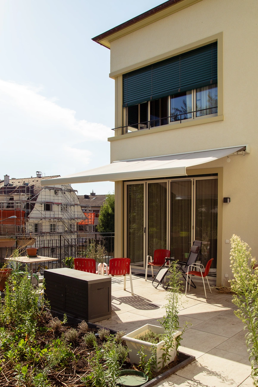Das bestehende Mehrfamilienhaus wurde im Innenausbau komplett renoviert und gebäudetechnisch saniert. Das Dach wurde energetisch saniert und mit einer Indach-Photovoltaikanlage ausgestattet, die bestehende Ölheizung wurde entfernt und durch eine Erdsonden-Wärmepumpe ersetzt.